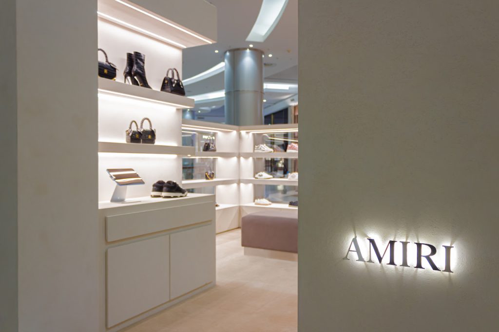 Showcasing key pieces from the Autumn-Winter 2025 collection, the space captures the essence of AMIRI’s evolving women’s narrative — where elegance meets contemporary design. Each silhouette reflects the brand’s signature balance of structure and fluidity, craftsmanship and ease.